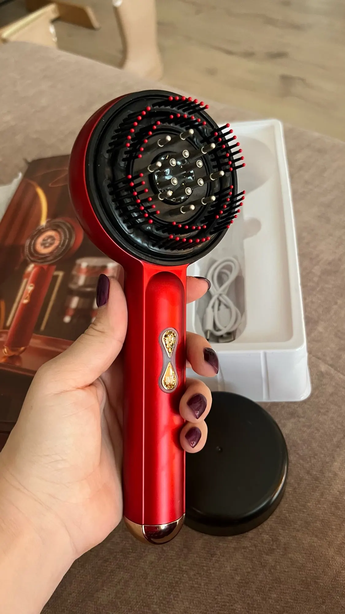 Thanks to its vibrations and light therapy, it activates blood circulation, bringing more oxygen and nutrients to the roots. The result: faster growth and stronger hair.